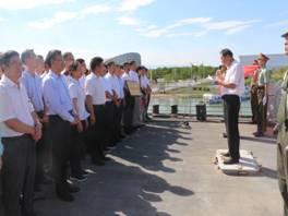 在有序参观完银川舰后,全院党员和入党积极分子参加了升旗仪式,张建才副院长宣读了《中共银川职业技术学院委员会2018年发展党员的决定》,陈丽英副院长宣读了《学院2017-2018学年先进党支部、优秀共产党员以及先进党务工作者的表彰决定》,并为全体获奖党员颁发奖状,支部党员刘凯、郭金光、王亮、万鹏老师被评选为优秀党员和优秀党务工作者。翟新荣副院长引领全体党员重温入党誓词,更加坚定了大家不忘初心跟党走,牢记使命勇担当的信念。丁媛副书记引领学生团员代表重温入团誓词,在庄重而严肃的仪式后原银川舰政委索德胜同志讲述了银川舰的历史,全体党员重温了银川舰的辉煌事迹,追忆了峥嵘岁月。最后,银川职业技术学院党委书记、院长张光华同志发表了重要讲话。他讲述了党和自治区的发展历史,强调自治区的第十二次党代会描绘的全区与全国同步建成全面小康社会的宏伟蓝图,强调我们要准确把握未来五年的奋斗目标,为宁夏的“两个先行区、两个示范区”建设添砖加瓦你,准确把握学校的发展方向,提升发展层次和水平,推进师生共同发展,以校为家,激励全校师生发扬“振奋精神、实干兴宁”的作风和精神,增强文化自信和自觉,促进学校发展。