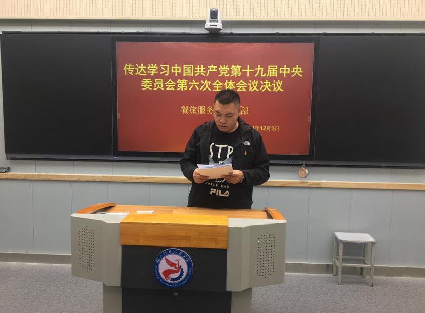 中国共产党第十九届中央委员会第六次全体会议,于2021年11月8日至11日在北京召开。中央委员会总书记习近平代表中央政治局向全会作工作报告,并就《中共中央关于党的百年奋斗重大成就和历史经验的决议(讨论稿)》向全会作了说明。12月2日下午四时,餐旅服务部党支部在支部书记张文同志的主持下召开了十九届六中全会精神专题学习研讨会,学院张建才副院长,党办傅强书记以及系部全体教师参加了会议。