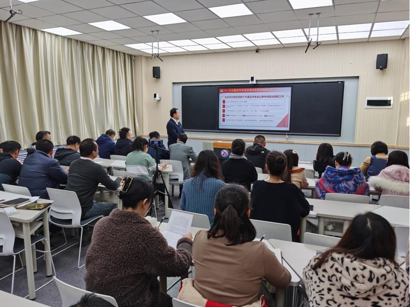 张文书记的党课以展示党的百年历程为主线,设置了勿忘昨天、无愧今天、不负明天三个篇章。篇章一:勿忘昨天,以一个主题、三次飞跃、四个阶段、四个伟大飞跃、五点意义、十条历史经验为主线,通过讲述,使得老师们对此次会议召开的历史背景、百年取得的重大成就和总结的历史经验有了全面、系统、深入的了解和认识,尤其是学深悟透了“十个坚持”和“一个根本问题”。篇章二:无愧今天。以十项新的重大成就以及党新征程的主要内容为主线。回望过去,展望未来,新时代的我们必将更加坚持马克思列宁主义、毛泽东思想、邓小平理论、“三个代表”重要思想、科学发展观和习近平新时代中国特色社会主义思想,更加树牢“四个意识”、坚定“四个自信”、践行"两个维护”,做政治上的明白人、纪律上的清醒人和作风上的实在人。篇章三:不负明天。中共二十大将于明年下半年在北京召开,党的二十大是我们党进入全面建设社会主义现代化国家、向第二个百年奋斗目标进军新征程的重要时刻召开的一次十分重要的代表大会,是党和国家政治生活中的一件大事。