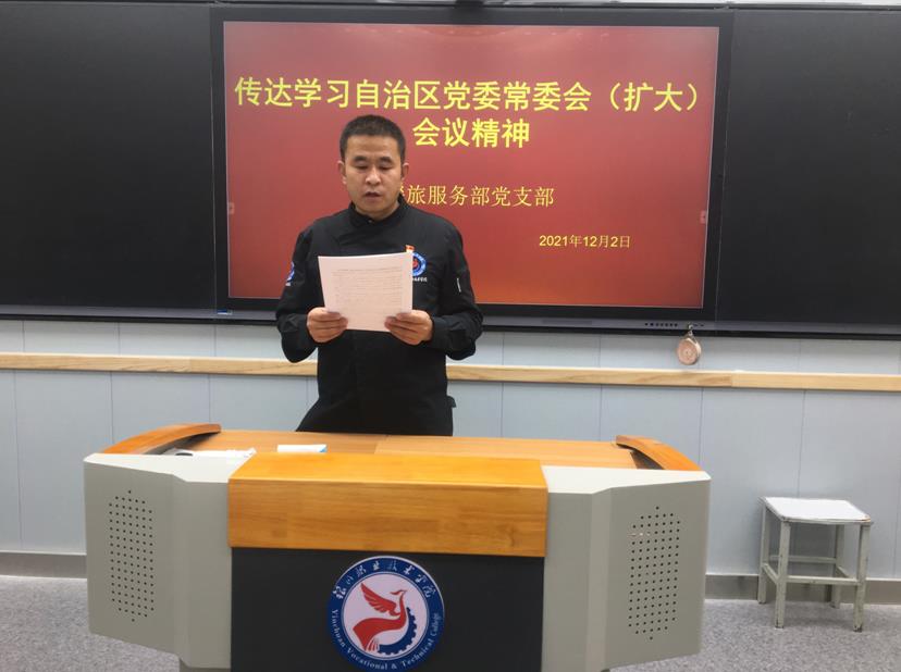 首先,餐旅服务部党支部书记张文同志以《勿忘昨天 无愧今天 不负明天》为题,围绕中共十九届六中全会的主要内容,为全体教师讲了一堂内容深刻而精彩的党课。