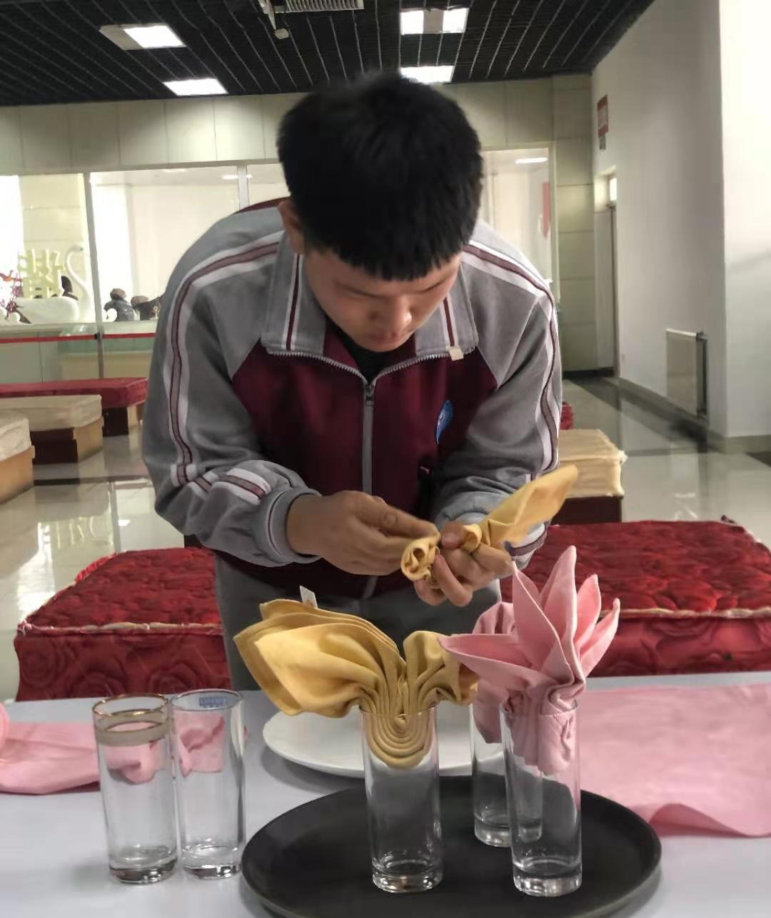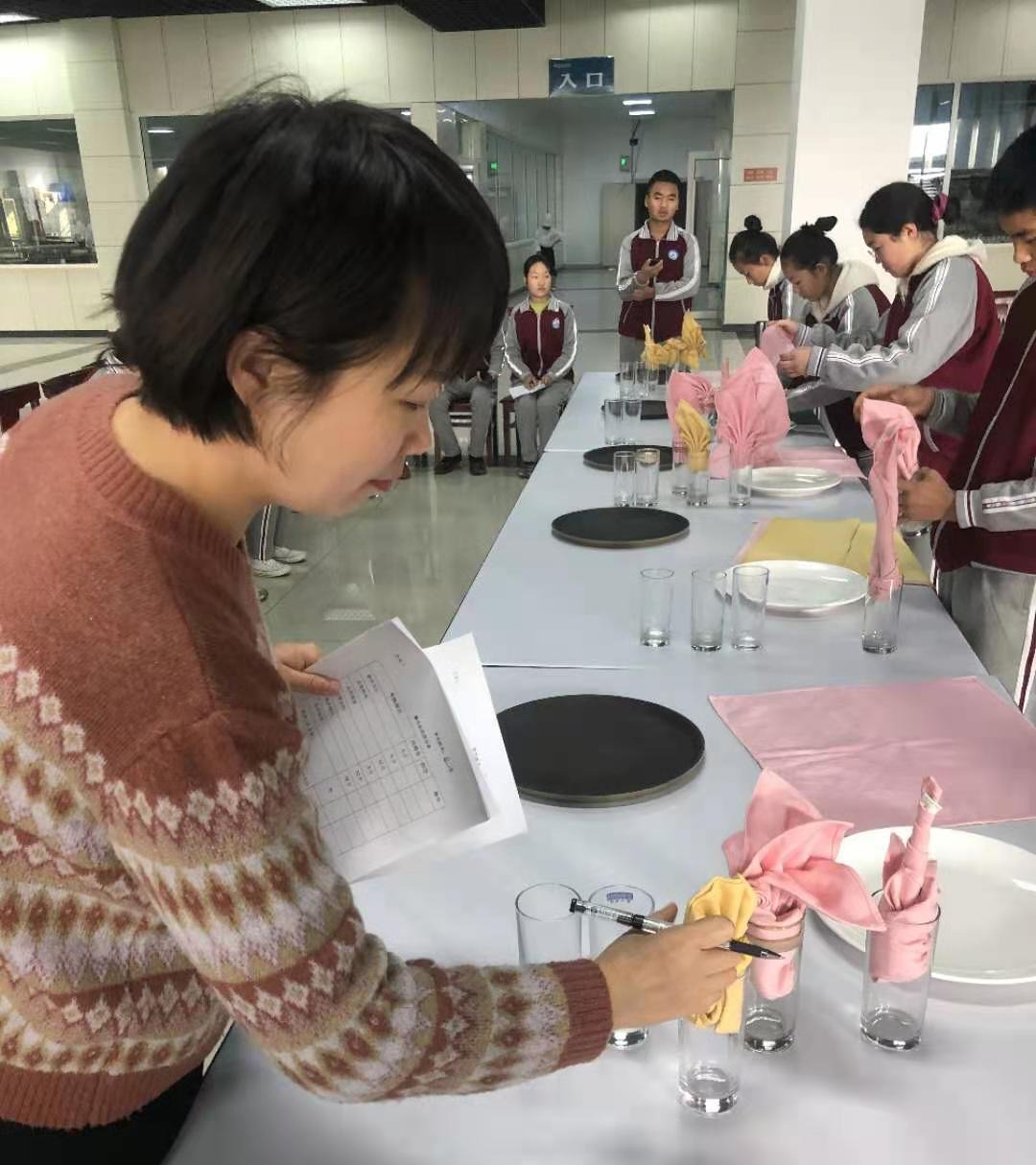 本次比赛初赛是全员参与的形式,给每一位同学展示自我的机会,也增加了学生对专业学习的紧迫感。班主任、科任教师和课代表起到督促监督的作用,引领学生抓住有效的(自习课、晚自习、课间)时间将学过的餐巾折花造型进行反复练习,达到熟能生巧的效果。