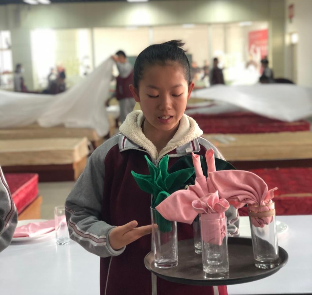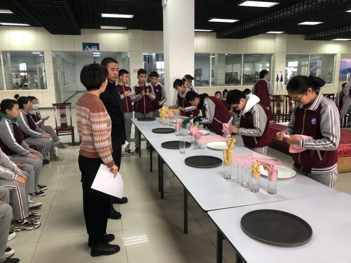 高星级酒店运营与管理专业酒店服务赛项比赛经过近1个月的精心准备,于12月11日圆满结束。比赛不是目的,是一种形式,从比赛中获取知识才是我们开展活动的宗旨。同学们对西餐餐具了解不像中餐餐具这般熟练,在规定的时间内完成摆台,对每一位选手是一种考验,更是一种证明。不但考察了学生专业操作技能的掌握情况,又锻炼了学生的语言归纳总结表达的能力。已达到对学生综合素质的培养,对学生来说也是种专业素养的培养。“以赛促学、以赛促练、以赛促干”,大大激发了学生对专业知识技能的学习兴趣,体现了“学以致用”的教育理念。