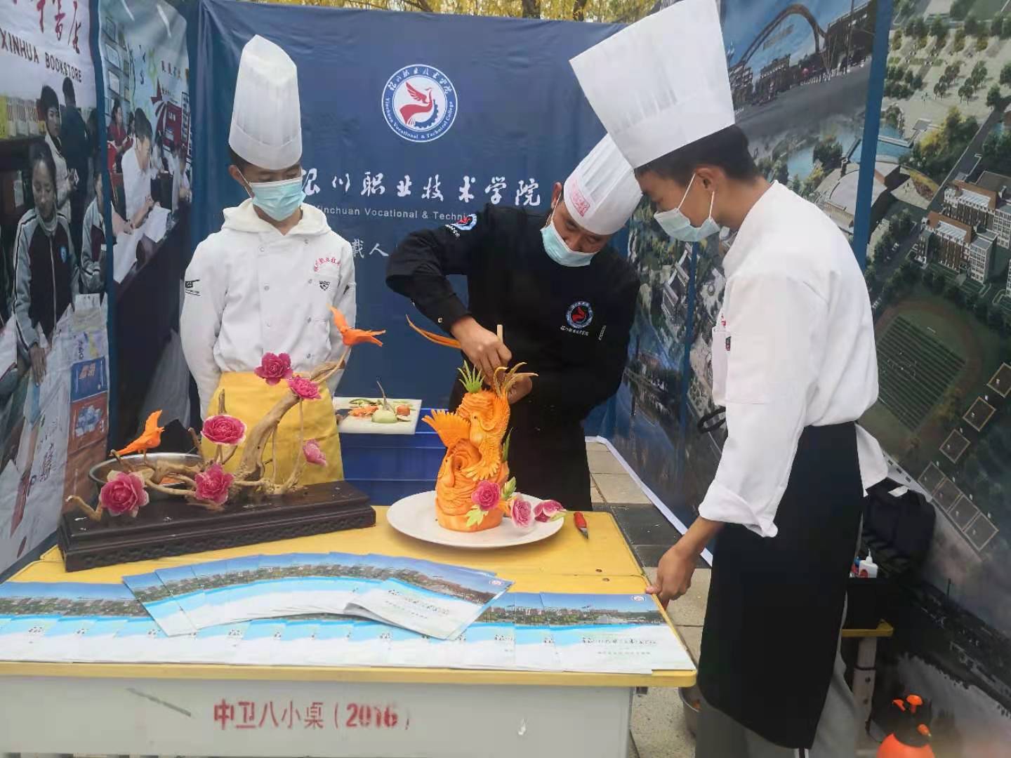 王波主任带领烹饪学子赴中卫布展、现场冷拼雕刻技艺展示