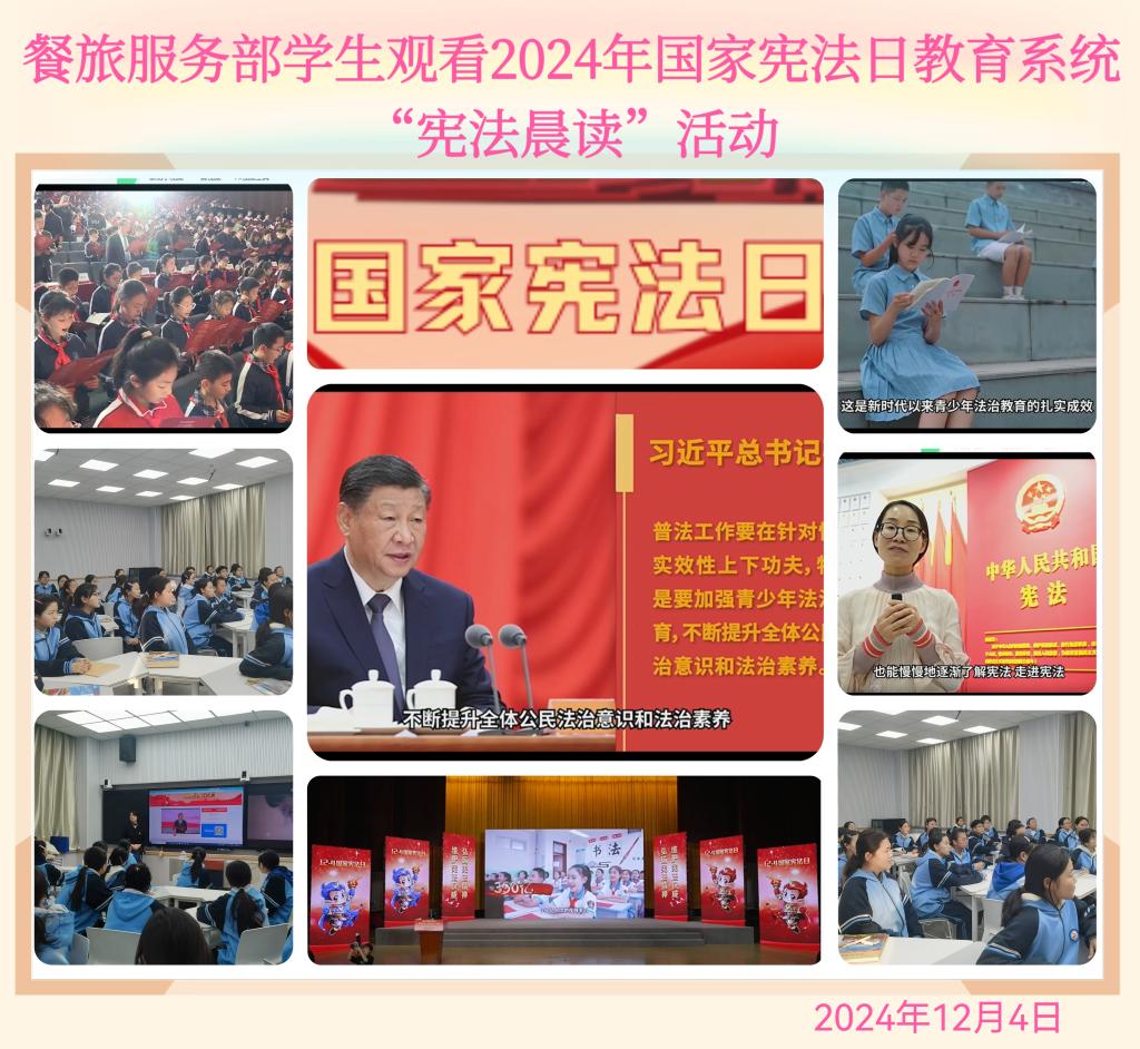 餐旅部思政课学生观看2024国家宪法日教育系统“宪法晨读”活动
