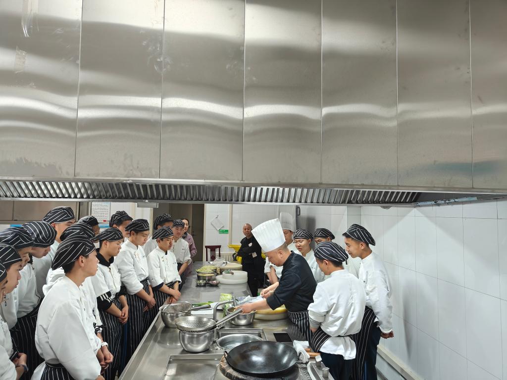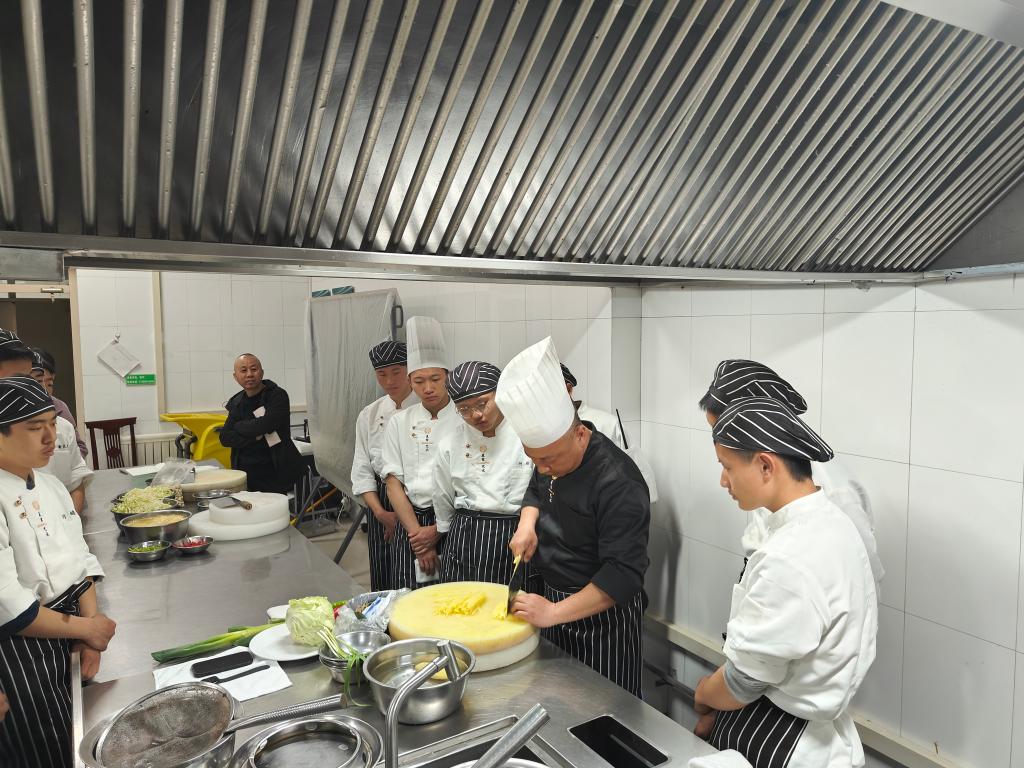 为加强新时代教师队伍建设,规范和完善教学管理机制,努力调动教师和学生教与学的积极性,全面推进课程理实一体化、课程思政等教学改革,不断提高教育教学质量。餐旅服务专业部在学院课程处的安排有序开展了2024-2025学年“一月一课一评”活动,3月19日在烹饪实训楼热菜实训室,凌志老师完成了做课。