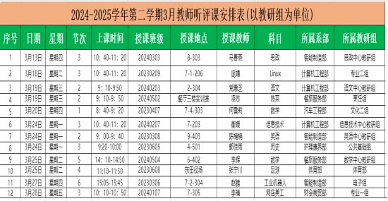 2024-2025学年第二学期“一月一课一评”活动安排(3月)