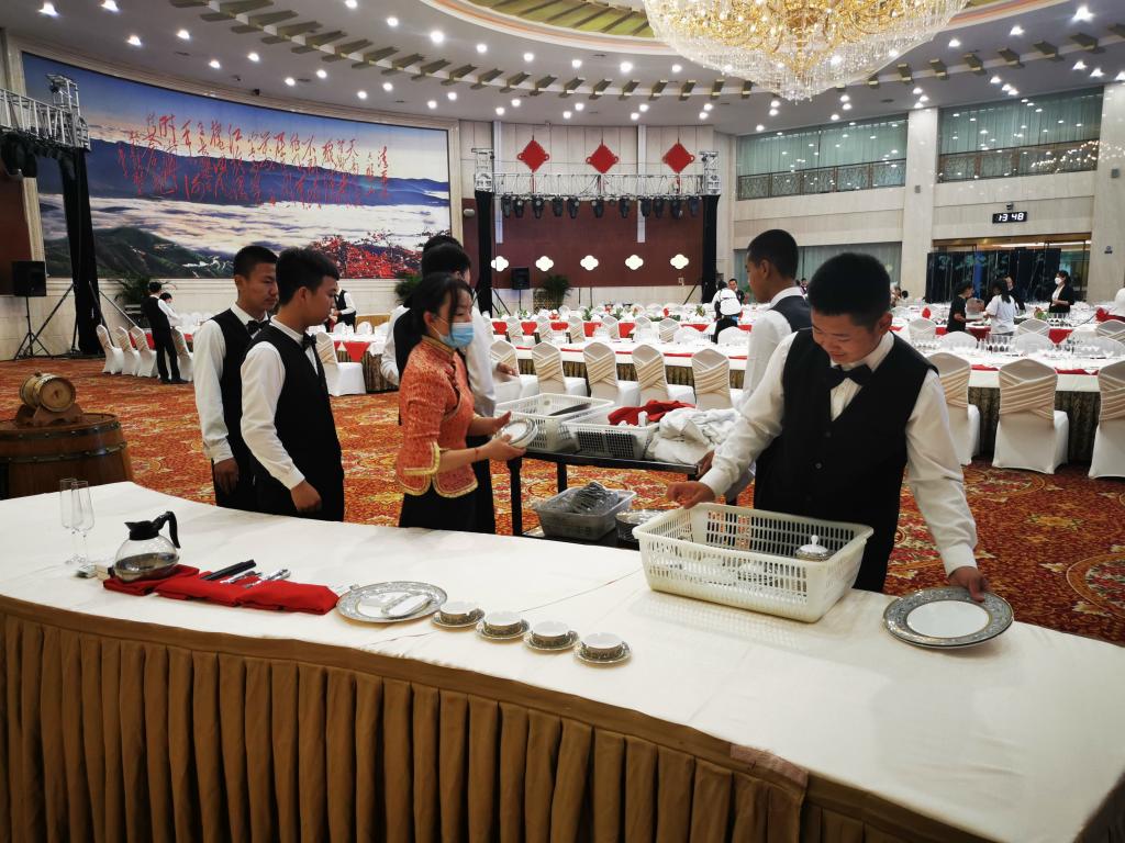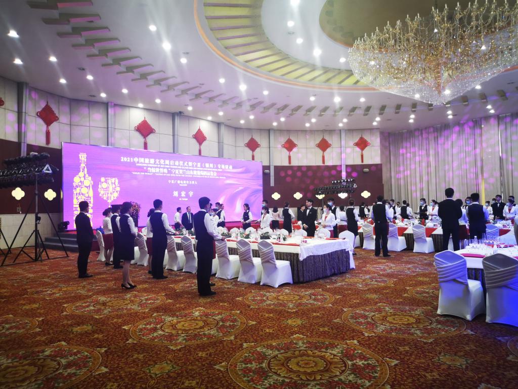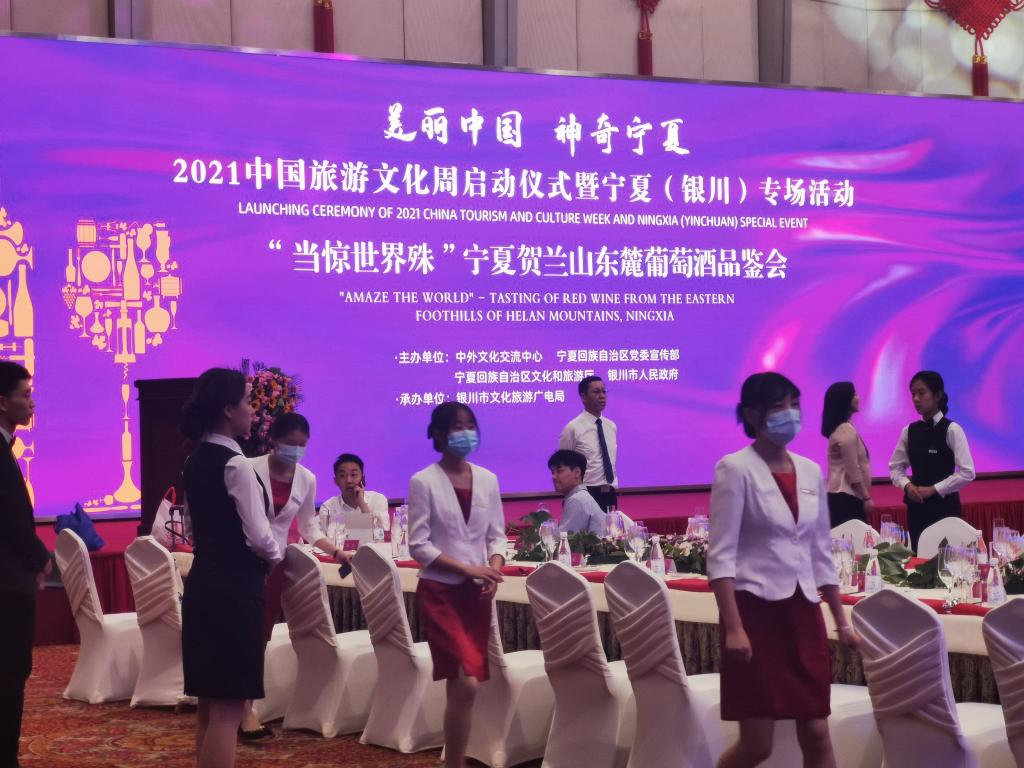 2021年6月7日,自治区文旅厅在阅海宾馆举办“2021中国旅游文化周启动仪式暨宁夏(银川)专场系列活动之 ‘当惊世界之殊’宁夏贺兰山东麓葡萄酒品鉴会”。受宁夏阅海会议中心邀请,银川职业技术学院餐旅服务部旅游服务与管理及中餐烹饪两个专业47名学生及2名专业教师参加了本次系列活动的接待任务。本次活动是餐旅服务部将实践性教学中的参观类和体验类两者相结合的一次实践性教学活动的尝试。