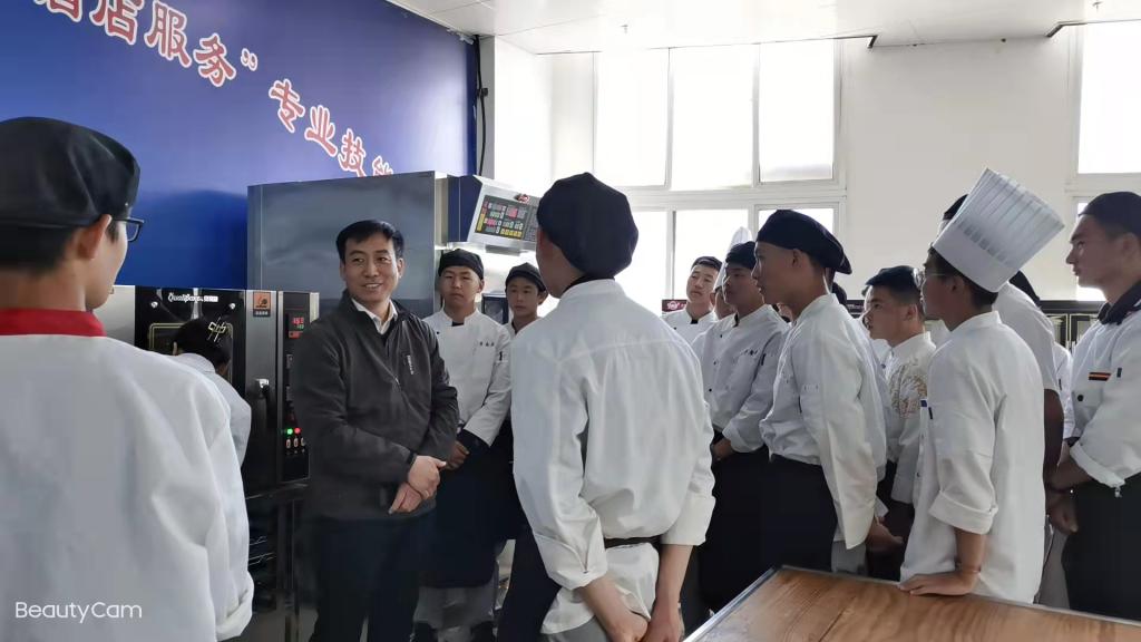 为了加强教学常规管理,实现教学管理规范化、科学化,促使各项教学常规抓好抓细抓实,切实提高教育教学质量,10月11日上午,黄建明院长深入课堂,采用随机深入的走访方式,来到了餐旅服务专业部实训楼了解了我系的课堂教学及实训楼建设情况,同时,深入上课班级与学生亲切交谈,了解本专业的课程开设、学生的课业及教学学习内容掌握等情况。并针对本专业本堂课向学生们提出学好专业应具备的素质和今后努力的方向,做一名德、智、体、美、劳全面发展的四有人才。