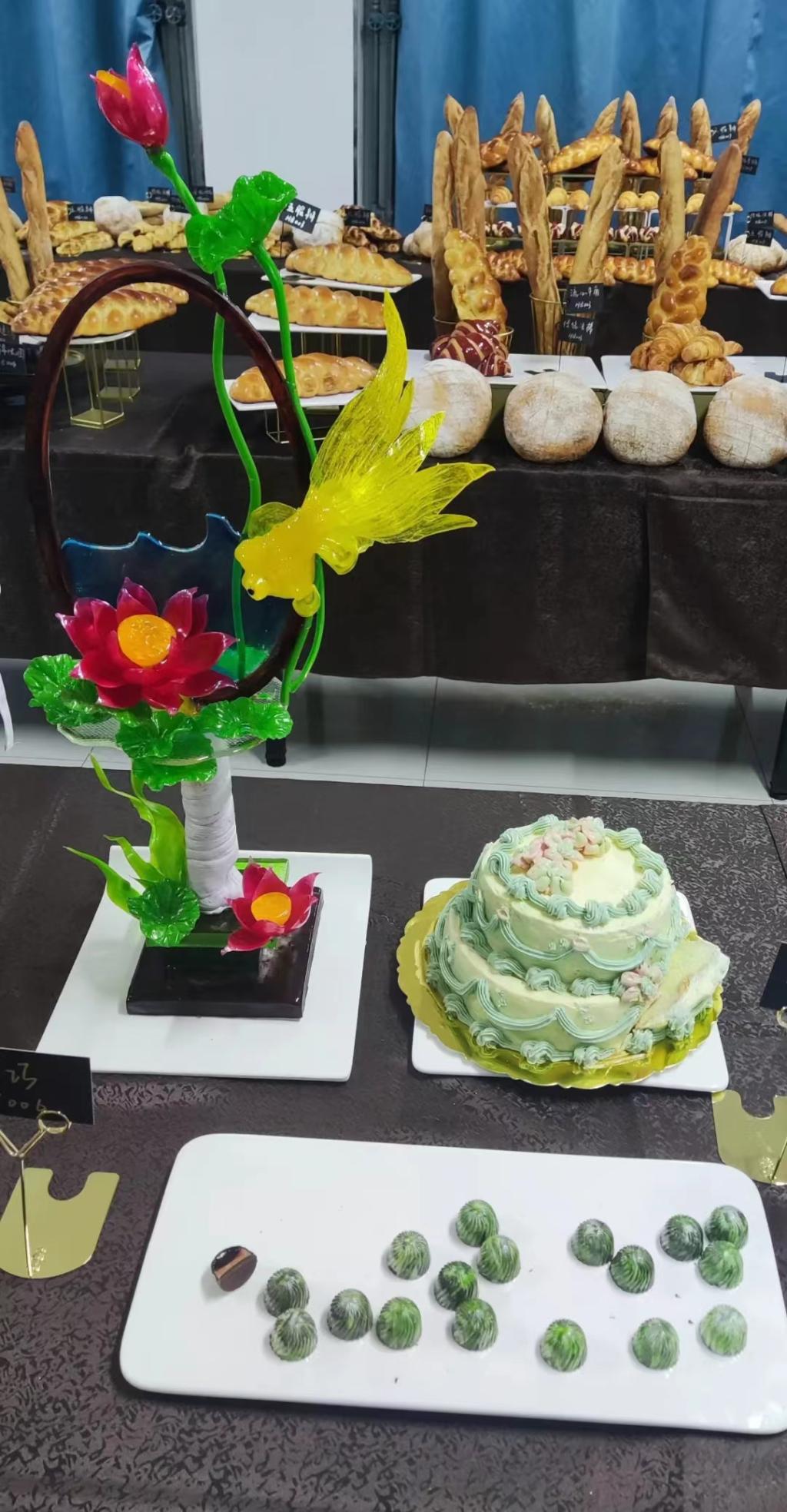 自从2022年5月27日学院收到比赛通知以来,学院领导高度重视,在张文主任的带领组织下,开始积极筹备。在没有专业老师的情况下,由赵志超老师负责学生的选拔和糖艺培训工作,张佳慧老师负责蛋糕裱花。张文主任对学生制作的作品色彩和造型设计给出了很多指导和建议。为了在比赛中取得好成绩,在暑假前就利用课后时间对学生展开辅导和练习。