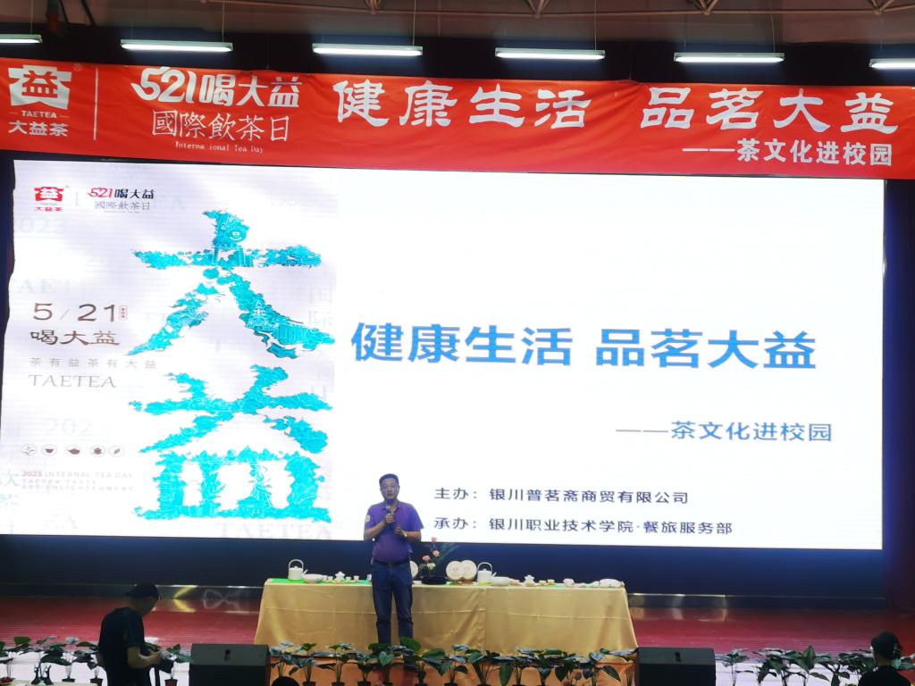 5月26日,在第四个国际茶日来临之际,银川职业技术学院餐旅服务部联合大益集团银川普茗斋商贸有限公司主办了“健康生活、品茗大益——茶文化进校园”为主题的公益活动,学院党委副书记、院长喻有朝、副院长李勇、招就处主任马德川及专业部全体师生参加本次活动。