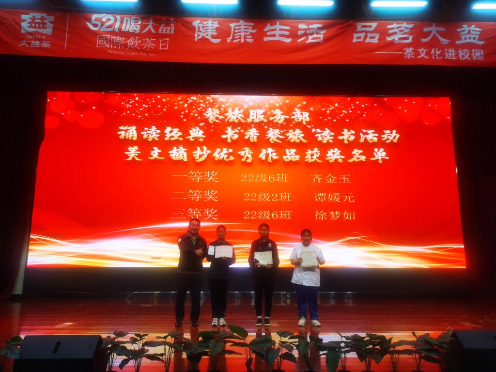 活动最后为学生获得专业部“书香校园”优秀作品颁奖。