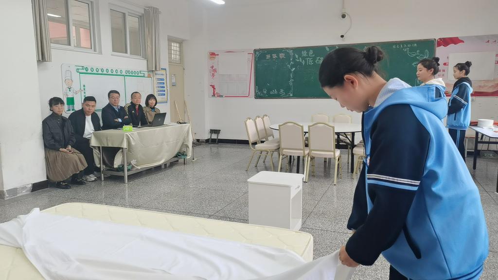 学院领导检查餐旅服务部酒店赛项国赛学生备赛情况