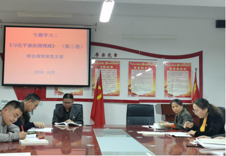 为增强广大党员教师对《习近平谈治国理政》(第三卷)的认识与理解,进一步增强“四个意识”、坚定“四个自信”、做到“两个维护”,财会商贸部党支部召开了关于《习近平谈治国理政》(第三卷)内容专题学习活动。