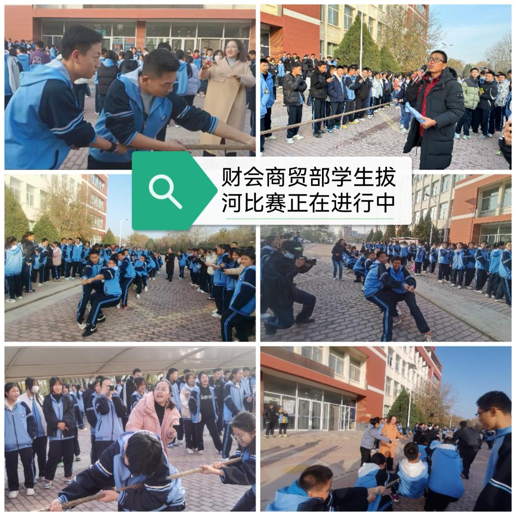 2024年11月20日——11月27日,通过体育老师杨桃东、范海飞、丁楠、实习老师苏晓财与财会商贸部班主任老师的全力配合,为期两周的财会商贸部学生拔河比赛圆满结束,学生们热情高涨、倾力协作,秉承“友谊第一,比赛第二”的原则,为班级荣誉竭力而战,最终决出第一、二、三名,财会商贸部部对获奖班级进行了表彰与奖励。
