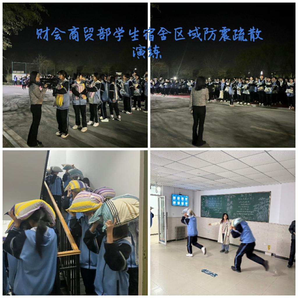 为提升学生在宿舍突发地震等安全事故时的应急反应能力,让学生熟悉安全疏散流程、路线,增强自我保护意识,确保能在紧急情况下快速、有序撤离,保障生命安全,财会商贸部于4月9日20:30在宿舍区域开展了防震疏散演练。