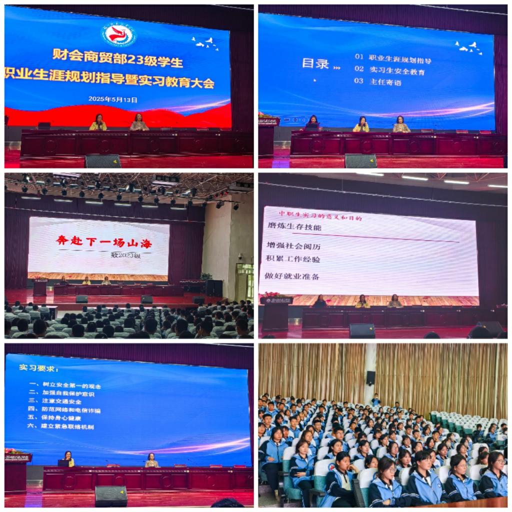 为了帮助23级即将实习的学生明确职业发展方向,掌握职业生涯规划方法,提升职业竞争力,同时强化实习生安全责任意识,普及实习期间安全知识与防范技能,保障实习安全有序开展。财会商贸部于5月13日在学院报告厅召开了23级实习生职业生涯规划指导暨实习安全教育大会。