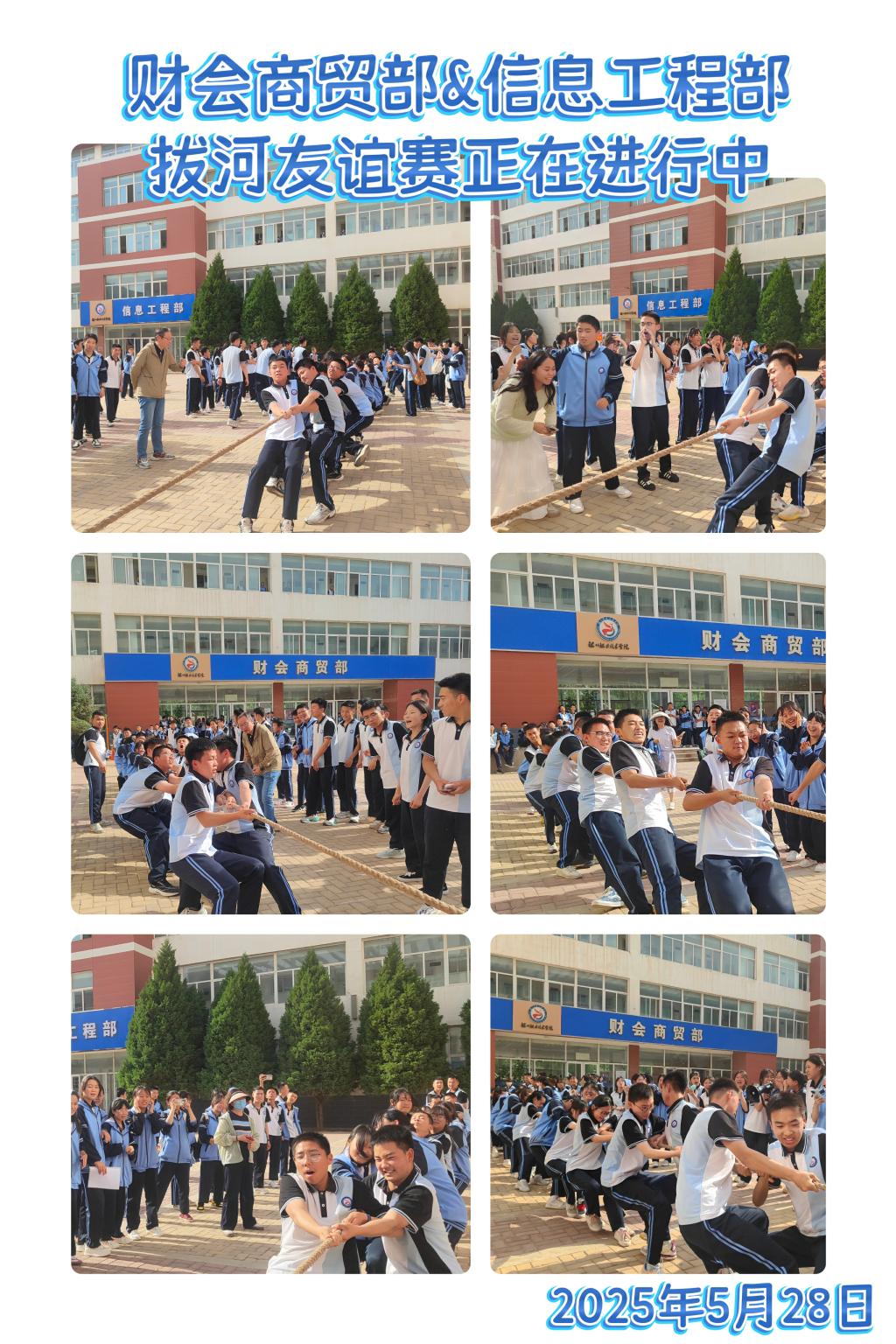 为了促进系部之间学生的交流互动,增强学生团队协作精神与集体荣誉感,丰富校园文体生活,营造积极向上、团结拼搏的校园氛围,财会商贸部与信息工程部举行了23级、24级学生拔河友谊赛,赛程近三个月,5月28日下午,进行了激烈的决赛角逐。