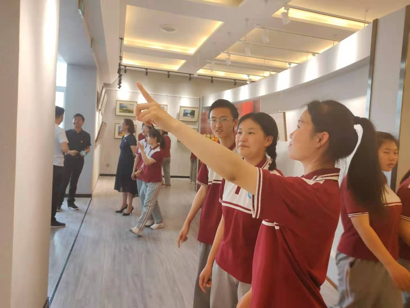 黄建明院长,付强书记等各位领导老师莅临参观本次作品展示。每幅作品中都流露着同学们对党的热爱之情,敬仰之情与向往之情。在同学的解说下每幅作品仿佛被赋予了生命一般,陈述着属于自己的故事,使在场的每位老师沉醉在历史的长河。