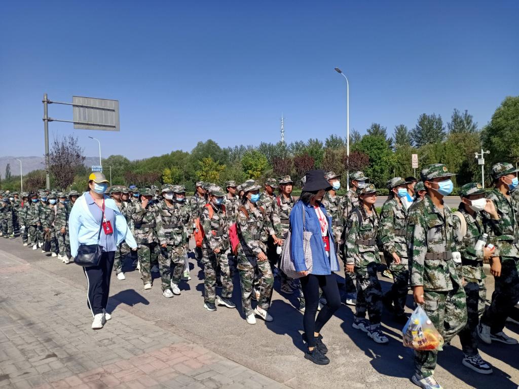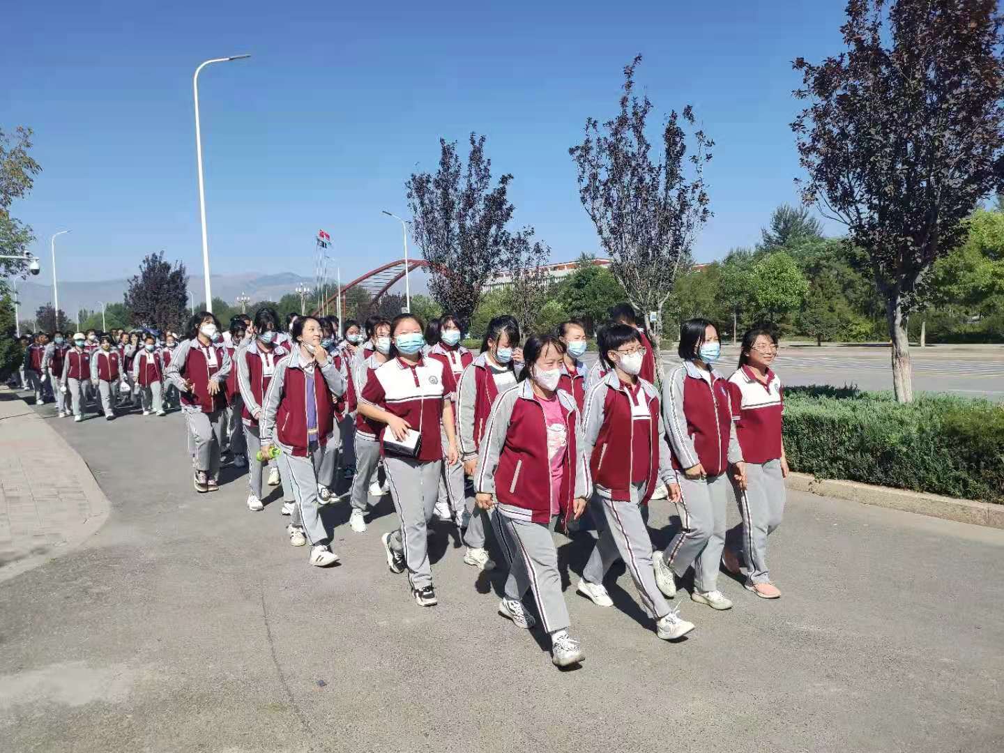 2021年9月8日,银川职业技术学院财会商贸部各领导、老师、教官亲自带领着本部新老学生们去往贺兰山体育馆疫苗点接种疫苗。走出校门,迎着明媚的阳光,同学们在老师和教官的组织带领下,踏上了宽敞明亮的马路,就在那洒满阳光的路上没有抱怨的声音,只是充满了同学们的欢声笑语。