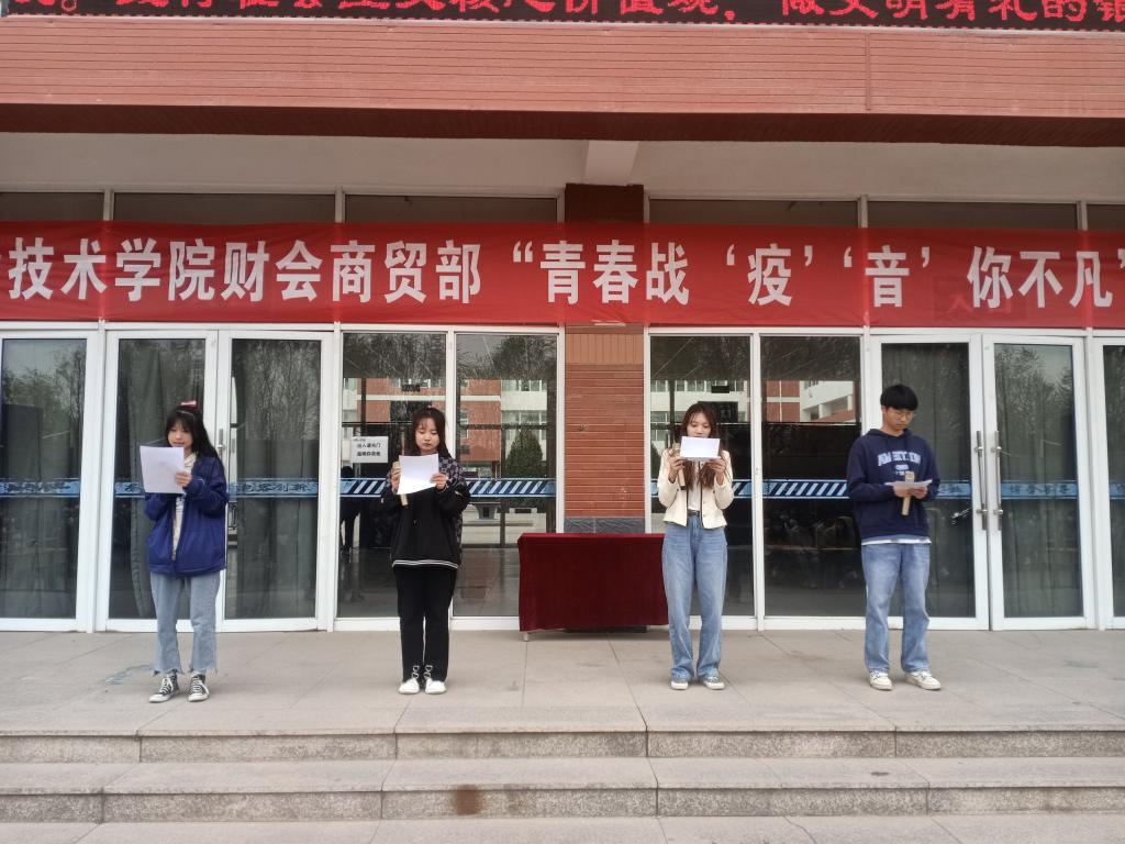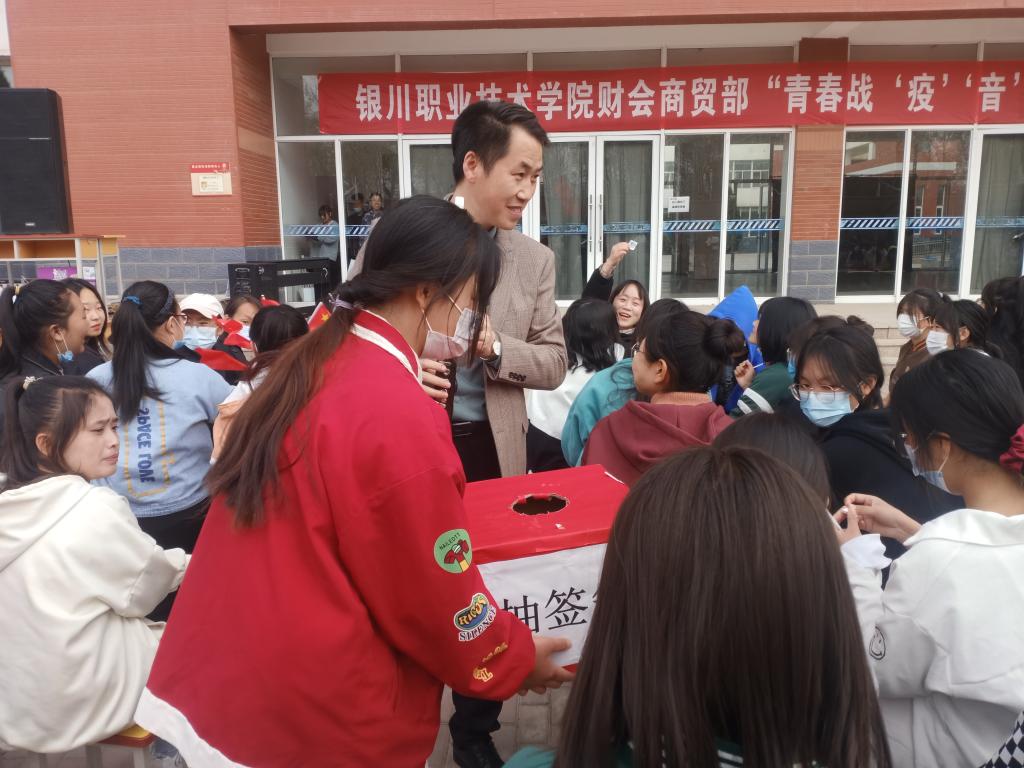 为了加强校园精神文明建设,进一步丰富校园生活,缓解因疫情在校集中生活的情绪,银川职业技术学院一一财会商贸部在2022年4月3日及4月4日组织同学们在系部南门小广场分别开展歌唱比赛,才艺大比拼活动。