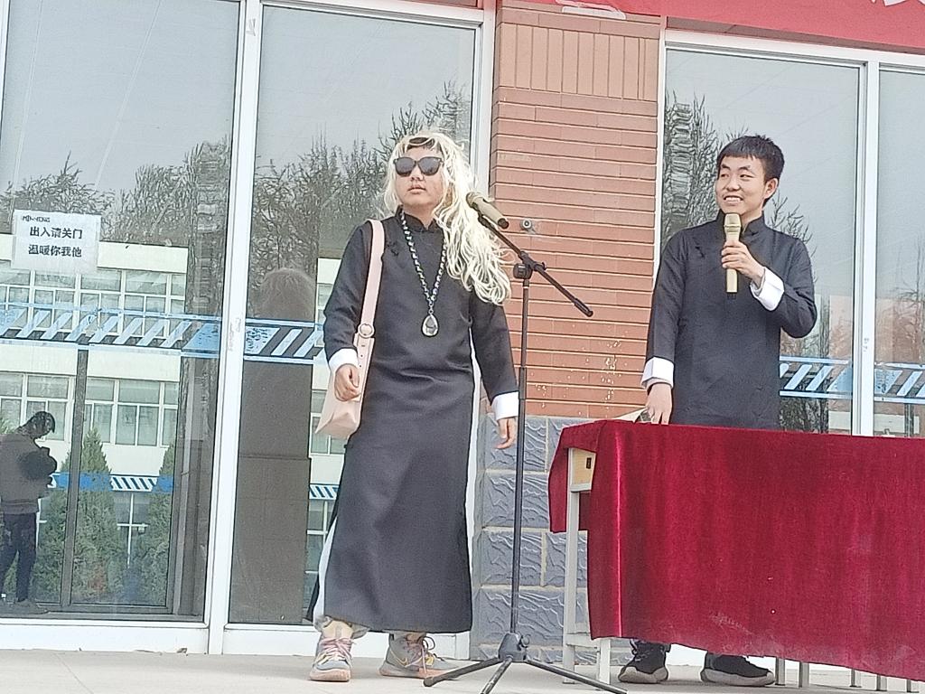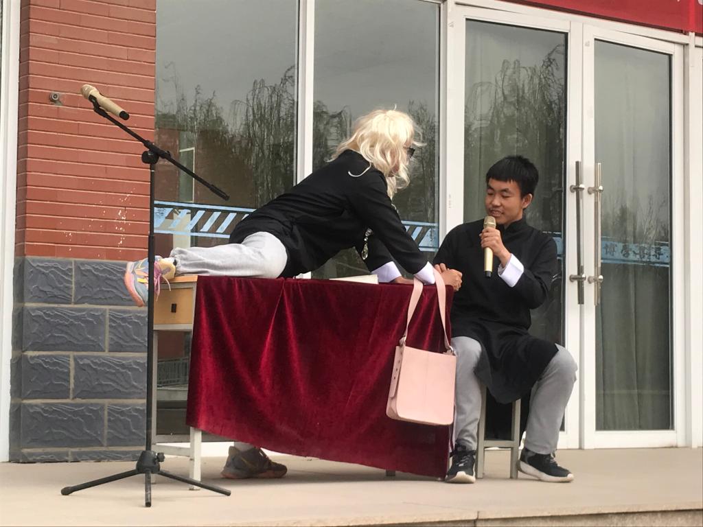 19级5班同学带来的宁夏方言版小品《泰坦尼克号》,画面有趣, 用宁夏地道的方言向台下观众呈现了另一版本的《泰坦尼克号》,现场气氛活跃 ,惹的同学老师们哈哈大笑。