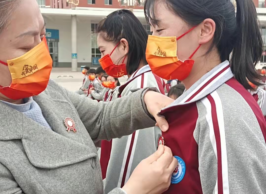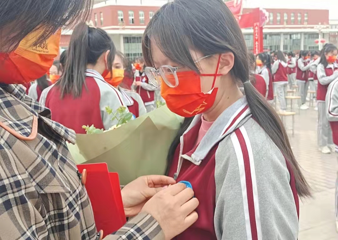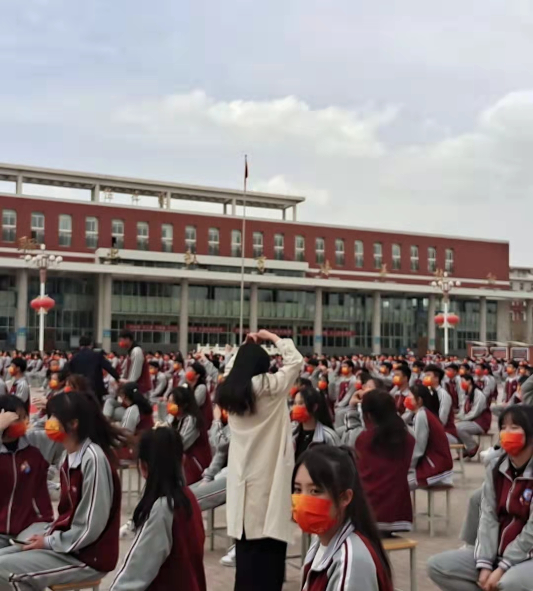 随着前面节目的预热 ,气氛达到高潮,到了同学们宣誓的庄严环节,同学们摘下口罩,迅速起立,跟着主持人,铿锵有力的宣誓 ,话语中是对未来满满的憧憬与向往!"请党放心,强国有我! "随着这句话语的结束 ,宣誓词到此结束!但大家的炽热的心不会结束 !