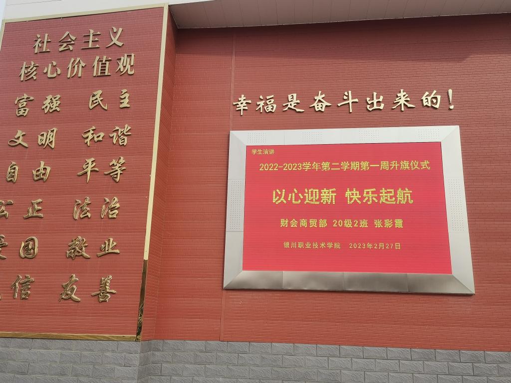 本次升旗仪式由学院团委总策划,财会商贸部具体负责,学院党委委员、副院长翟新荣主持。良好的开端,是成功的一半。新学期,摆在我们面前的一切都是新的,新的起点,新的征程,新的希望。