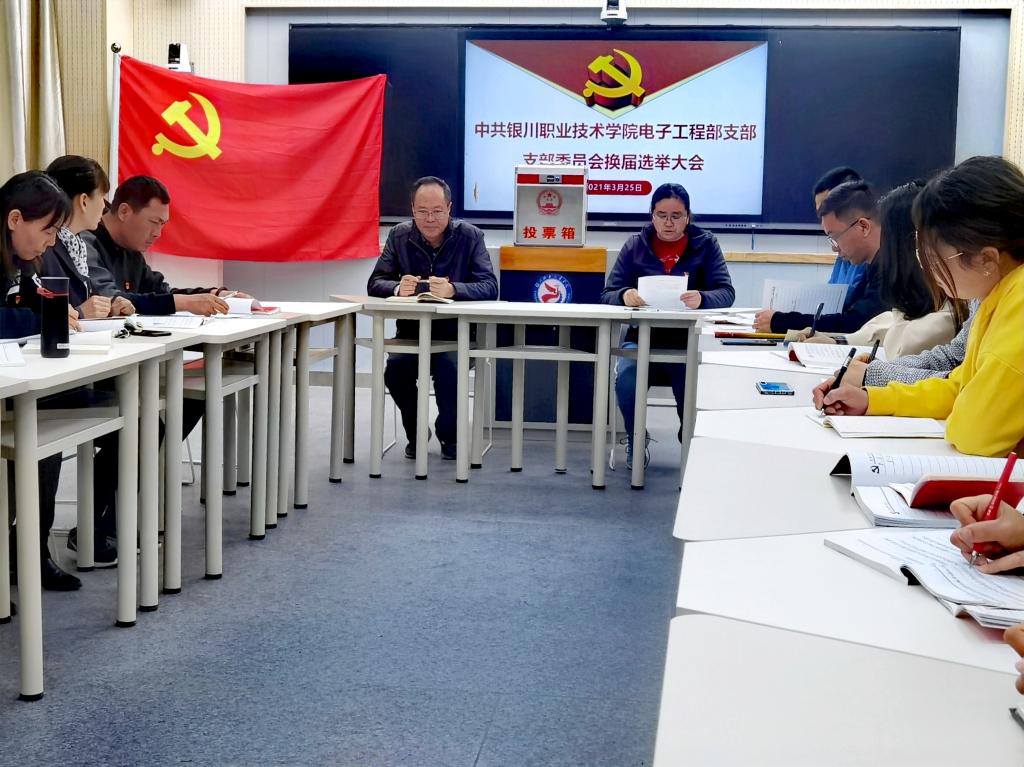 2021年3月25日下午,电子工程部党支部在101录播室进行了换届选举,召开了新一届支部成员的选举大会,共有22名党员参加了本次选举,学院院长助理张冰同志出席了本次会议,大会由宋洁书记主持。