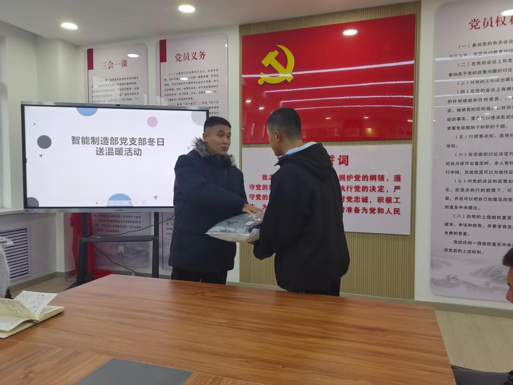 12月11日下午,智能制造部党支部在党建室举行爱心捐赠仪式。党支部书记宋洁对在场的孩子们提出了殷切的希望,同时鼓励孩子们从小树立远大的理想,培养高尚的道德情操,努力践行社会主义核心价值观,使自己成为新时代祖国建设需要的栋梁之才。