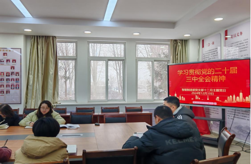 为深入学习习近平总书记在党的二十届三中全会上的重要讲话精神,深刻领会和把握进一步全面深化改革的主题、重大原则、重大举措、根本保证,深刻领悟“两个确立”的决定性意义,增强“四个意识”、坚定“四个自信”、做到“两个维护”,引导全体党员着力把进一步全面深化改革的战略部署转化为推进中国式现代化的强大力量,为全面建成社会主义现代化强国、实现第二个百年奋斗目标,以中国式现代化全面推进中华民族伟大复兴而努力奋斗。根据学院党委《关于开展2024年12月份主题党日的通知》文件要求,智能制造部党支部于2024年12月10日开展了“学习贯彻党的二十届三中全会精神”主题党日活动。
