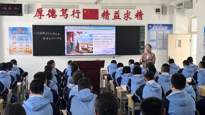 课上,陈思慧教师通过巧用多媒体展示了新民主主义革命胜利后,中国面临的国内外形势,以及为何需要进行社会主义革命。采用一些具体的历史事件,使学生理解当时的社会矛盾和需求,然后通过组织学生分组讨论土地改革的意义及其对农民生活的影响,增强学生的参与感和思考能力。课程最后,陈老师鼓励学生思考当前中国面临的新挑战,以及如何继承和发扬社会主义革命和建设的精神,培养学生的历史意识和爱国情怀。