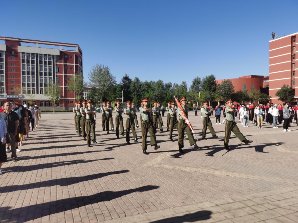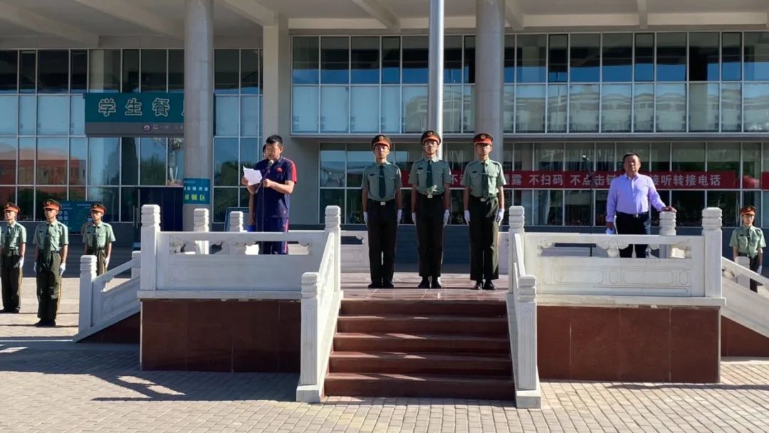 迎着夏日的骄阳,升旗仪式拉开帷幕,仪仗队迈着矫健的步伐迈上升旗