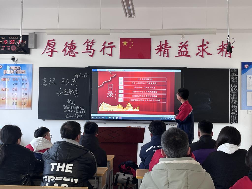 智能制造部各班同学身着整齐的校服,怀揣着对知识的渴望和对国家的热爱,参加了团课讲解。首先,各班级从“什么是意识形态?”这一基础问题入手,汇报人通过生动的讲解和丰富的案例,引导同学们认识到意识形态作为社会思想上层建筑的核心组成部分,对于国家政治安全、社会稳定以及个人价值观的形成具有至关重要的作用。