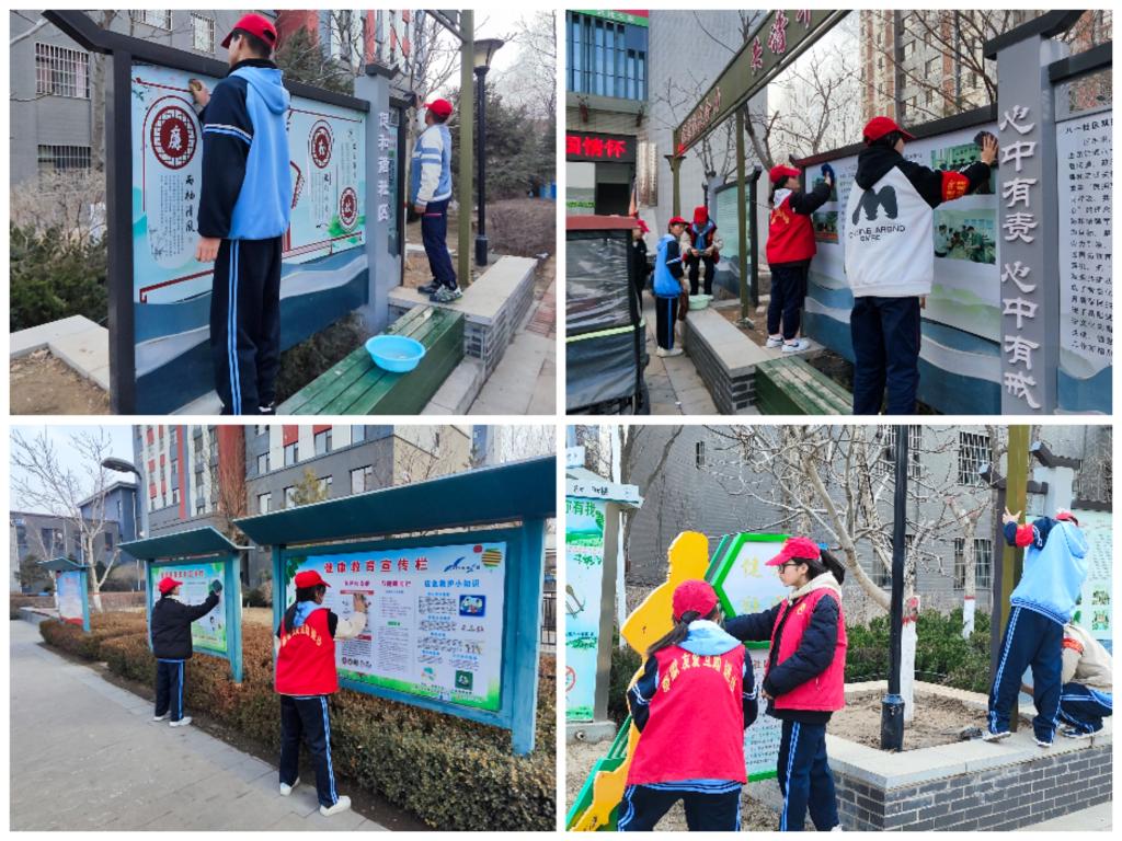 另一部分志愿者则手持抹布,开始精心擦拭社区的宣传栏。宣传栏上积累了不少灰尘,他们丝毫没有懈怠,每一处角落都认真清理。有的志愿者甚至站上凳子,努力清除高处的污渍。没过多久,宣传栏便焕然一新,上面的各类信息再次清晰地呈现在众人眼前。路过的居民不禁纷纷点赞:“这些孩子真是好样的!”