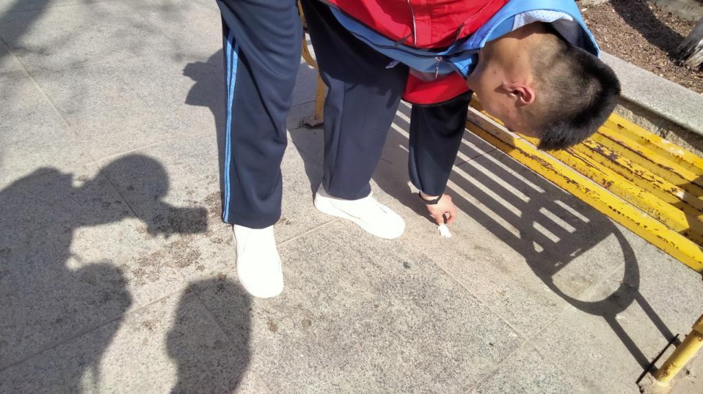 祭扫仪式后,同学们化敬意于行动,积极开展公园环境维护志愿活动。如图所示,一位同学身穿志愿服,专注地弯腰捡拾地面的垃圾,动作认真而投入。其他同学也纷纷行动,有的清理广场上的纸屑,有的拾捡草丛中的杂物。大家分工协作,不怕脏、不怕累,用实际行动践行志愿服务精神,让八一公园的环境更加整洁优美。