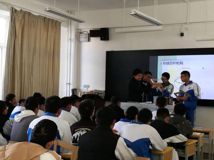 废旧材料就在老师的神来之笔的设计以后,变废为“绞链四杆机构”
