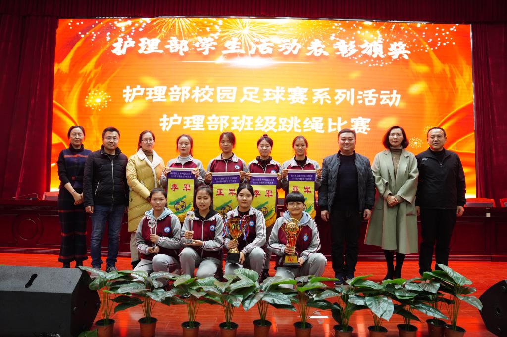 护理部在师生的共同努力下,形成了以学为本、学以致用的良好学风。本次活动分别从专业技能、学生素养和学生活动三个方面总结了学生的表现,颁发了护理与口腔技能大赛、各级优秀团支部和团员、护理部文明宿舍、校园足球赛系列活动、班级跳绳比赛等三大类、十四个奖项。