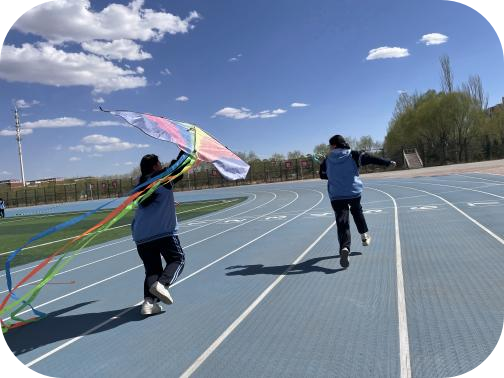 湛蓝天幕被五彩斑斓的丝绸填满,游弋的鲨鱼鳍冲出云层,振翅的苍鹰与卡通佩奇共享同一片气流。七色蜈蚣扭动着缀满铃铛的腰肢,在春风中叮当作响。绿荫场上,是学生奔跑的身影,耳边是学生或开心或着急的声音。比赛现场欢声笑语不断,气氛热烈而欢乐。