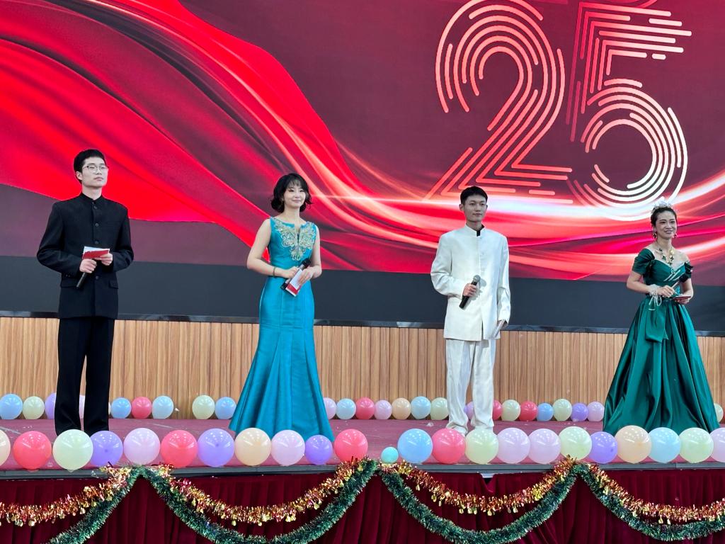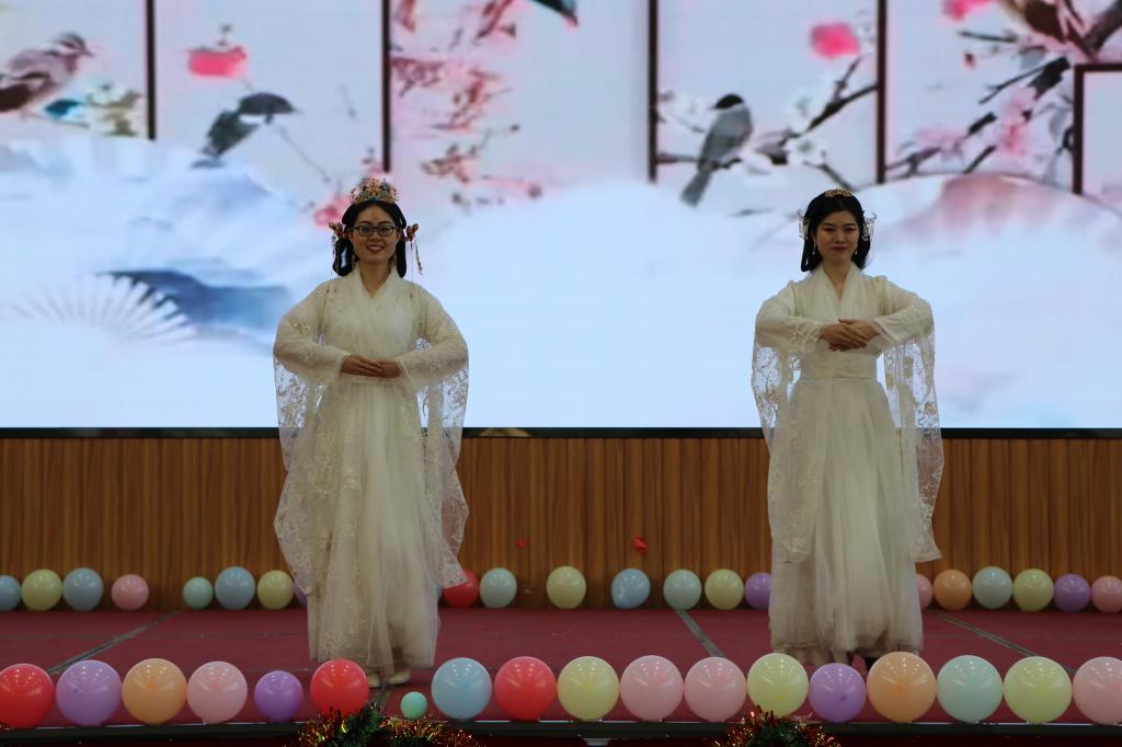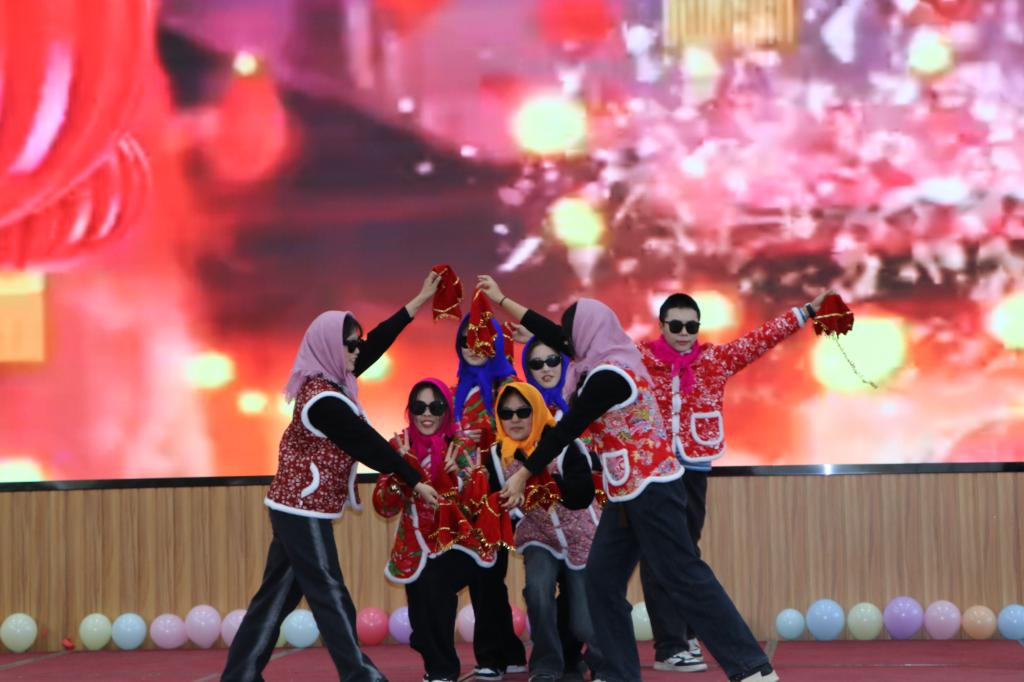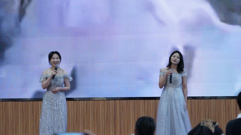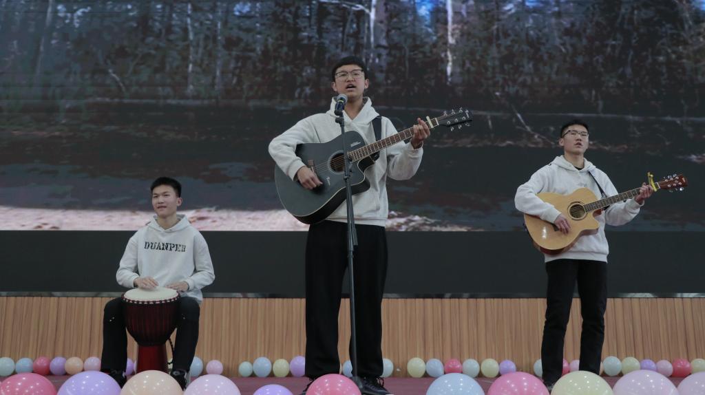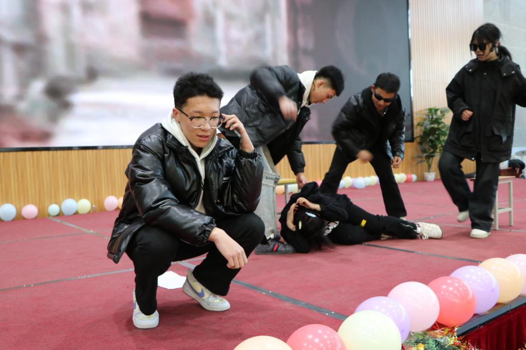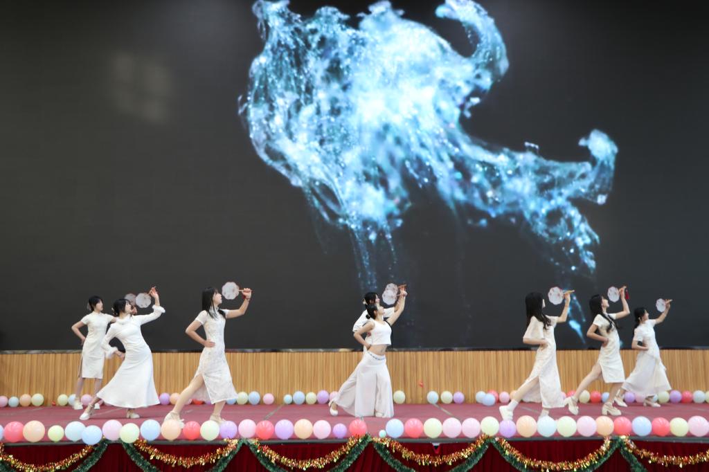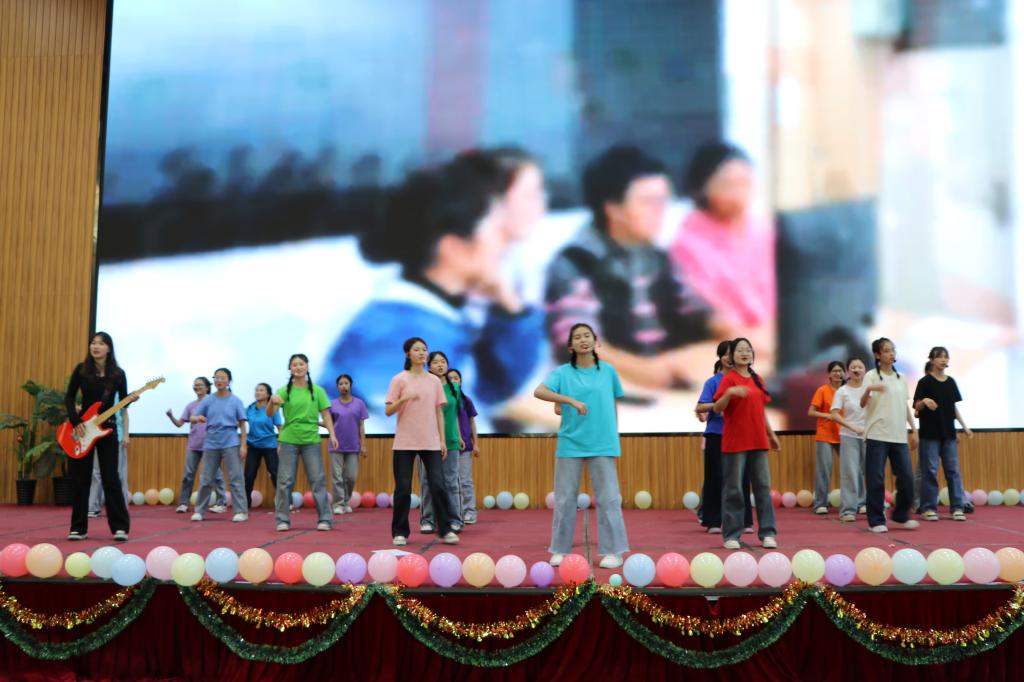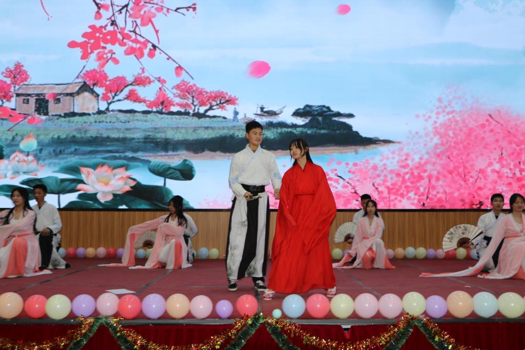 迎新盛会表演形式多样,融合了歌曲、舞蹈、乐队、脱口秀、小品等各具特色的节目,每一个节目都凝聚着各班级的心血与智慧,展现了学生们的才艺与风采。舞台上,灯光璀璨,音乐悠扬,同学们身着华丽的服饰,用各自不同的形式表达了对过去一年的深情回顾和对新年的美好祝愿。现场掌声雷动,喝彩声此起彼伏,气氛热烈而温馨。