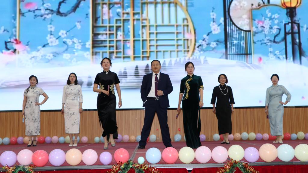舞台上,不仅有同学们多才多艺的表演,老师们的表演也可谓精彩绝伦。从经典老歌到流行金曲,悠扬的旋律在会场中回荡,动听的嗓音让人陶醉其中,老师们用歌声串联起了一段段美好的回忆,传递出对生活的热爱和对未来的美好憧憬。模特走秀环节中,老师们平时给人的印象是严谨、干练,而此次“中国服”时装秀却展示出了老师们的高贵、妩媚、优雅。芳菲流年,她们身着汉服、旗袍,曼妙多姿,笑颜如花,玉音婉转,闪射出无穷的撩人风韵。他们的精彩表现赢得了同学们的阵阵惊呼和呐喊,拉近了师生之间的距离。