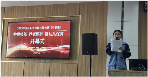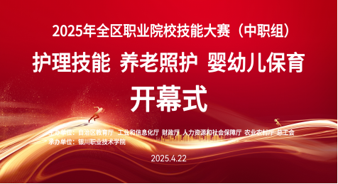 4月22日,2025年全区职业院校技能大赛中职组护理、养老照护、婴幼儿保育赛项在银川职业技术学院护理康养部二楼阶梯教室隆重开幕。