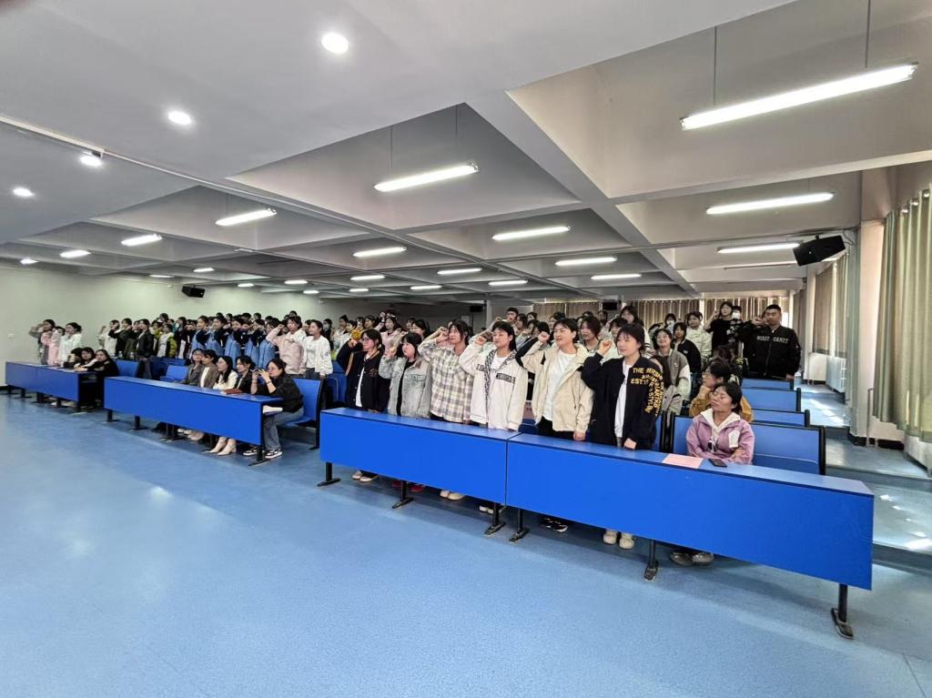 参赛选手代表王欣怡同学迈着坚定的步伐走上台来,带领全体参赛选手庄严宣誓。