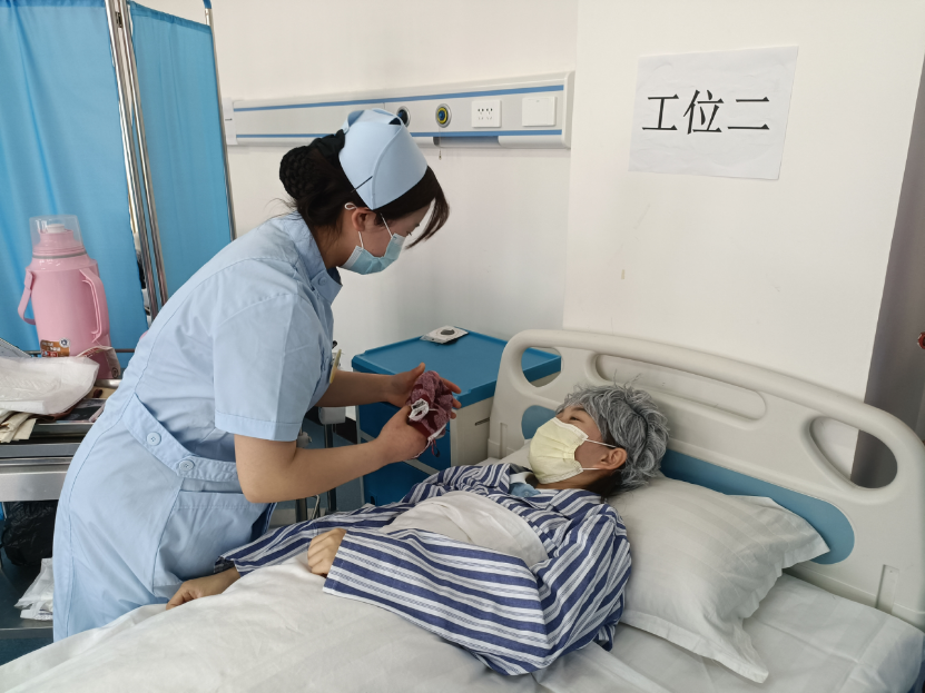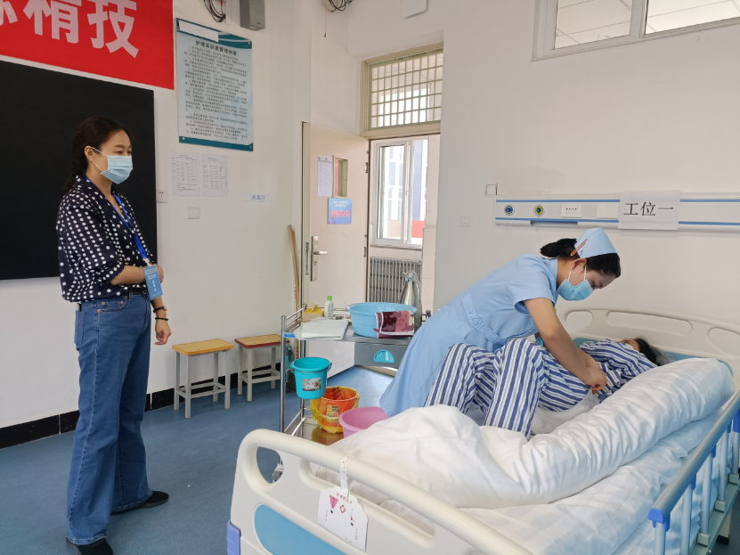 技能操作考试通过岗课赛证融通,将中职护理《老年护理》和等级证书老年照护有机融合,主要指导学生抓关键风险点,制作了大量视频资源,指导学生熟记操作流程,做到抓重点突破难点。赛前一周进行情景模拟操作项目实战训练,有效提升了学生的操作技能。