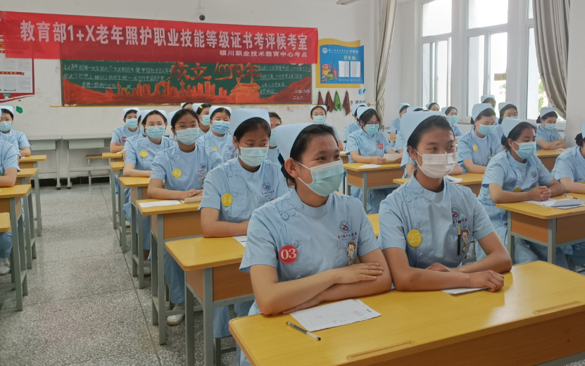 2022年5月19--20日,银川职业技术学院“1+X老年照护职业技能等级证书(初级)考试顺利开考,参加本次考试的为护理专业共80名学生,通过率100%。