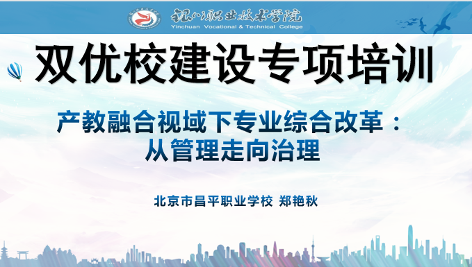 2022年4月20日我院邀请了北京市昌平职业技术学校正高级讲师郑艳秋副校长开展了“产教融合视域下专业综合改革:从管理走向治理”为主题的第二轮线上“双优校”建设专项培训,参与培训的有学院领导以及全体教师。