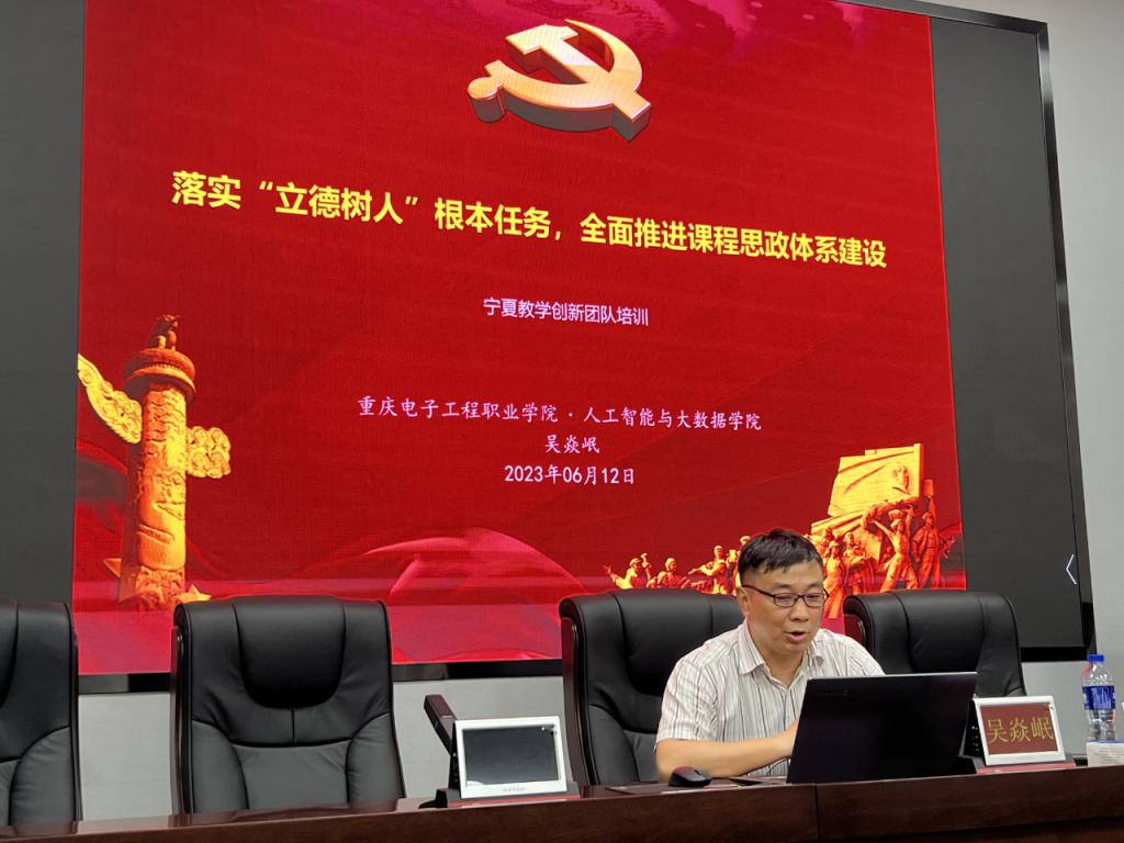 重庆电子工程职业学院人工智能与大数据学院吴焱岷副教授,以《落实“立德树人”根本任务,全面推进课程思政体系建设》为题,从深入学习党的二十大精神、课程思政的体系、课程思政的方法等方面,结合长期从事党建工作的经验和学术研究经验,从党建引领专业建设出发,详细地讲授了课程思政体系开发过程和课程思政案例设计。