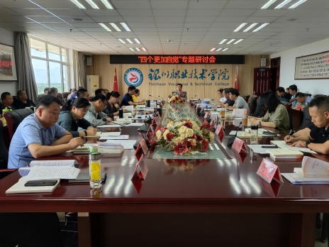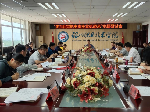 为深入贯彻落实习近平新时代中国特色社会主义思想和习近平总书记重要讲话精神,贯彻落实张柱书记在市委2021年第7次常委会(扩大)会议上的讲话精神,教育引导广大党员干部和教职工把思想行动统一到市委的决策部署和工作要求上来,把精力集中到推动各项任务落实上来,扎实推进党史学习教育走深走实,认认真真履行好岗位职责,推动学院高质量发展,6月11日,银川职业技术学院开展党委理论学习中心组学习暨“四个更加自觉”专题研讨活动。学院党委书记、院长黄建明主持会议,党委班子成员、院长助理、全体中层干部及部分思政教师代表参加了会议。