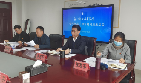 2021年11月19日上午,银川职业技术学院党委召开了2021年“深化作风建设”专题民主生活会。市委党史学习教育第三巡回指导组、市纪委监委派驻第十纪检监察组领导莅临督导,学院领导班子成员参加,会议由学院党委书记黄建明主持。