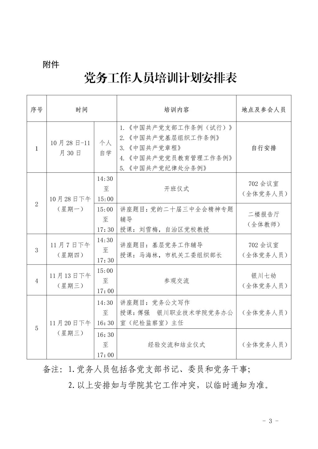 附件:党务工作者培训计划安排表
