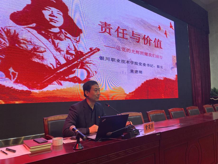 开班仪式结束后,学院党委书记、院长黄建明以《责任与价值——让党的光辉照耀我们前行》为题,为同学们进行了第一次讲座。黄院长以雷锋同志先进事迹导入,以问题驱动,由浅入深,层层递进,激励青年学子做到“读史明志,鉴往知来”。他强调,身为青年一代,只有富有朝气和梦想,才能担当祖国未来建设之大任,要通过细细品读党史这部“教科书”,时刻反省自己有没有为之奋斗的目标,有没有明确前行的方向,要在党史学习中不断汲取前进的力量,学习革命先辈们“牺牲小我、完成大我”的奉献精神,学习革命先辈们“不破楼兰终不还”的坚定信念,学习革命先辈们“先天下之忧而忧,后天下之乐而乐”的优秀品质,用这些力量充实自己,努力学习、勇于实践、提升自我,以积极的心态,去面对生活,去承受考验,担负起传递共产主义火炬的使命。